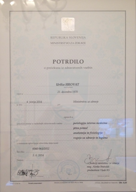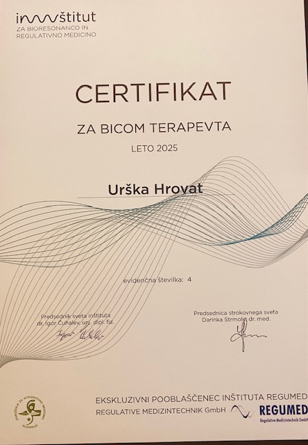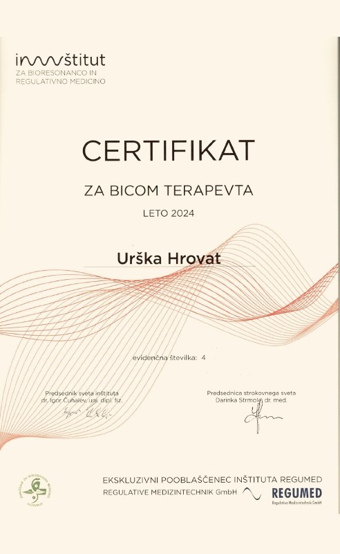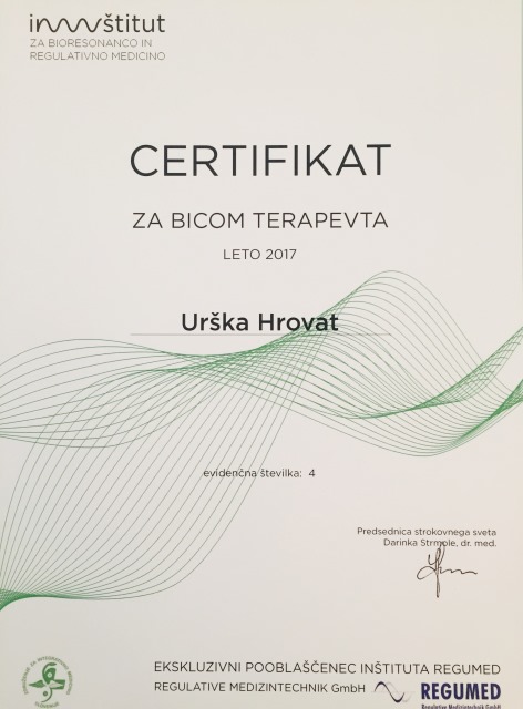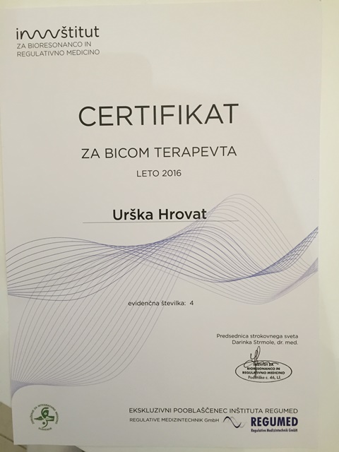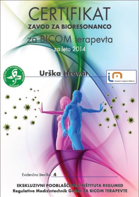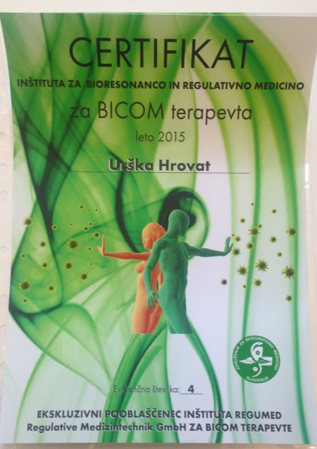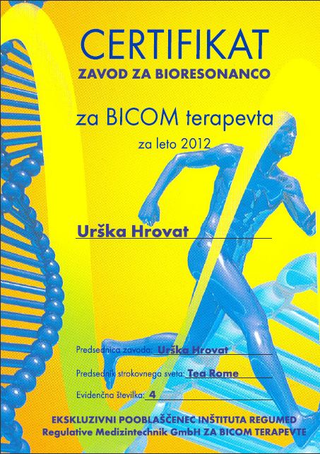| 2 | Einfuhrungs seminar und dem workshop fur Bicom resonanz therapie teilgenohmen | avgust 2010 | Grafelfing-Munchen Nemčija | Regumed - Institute fur regulative medicine |